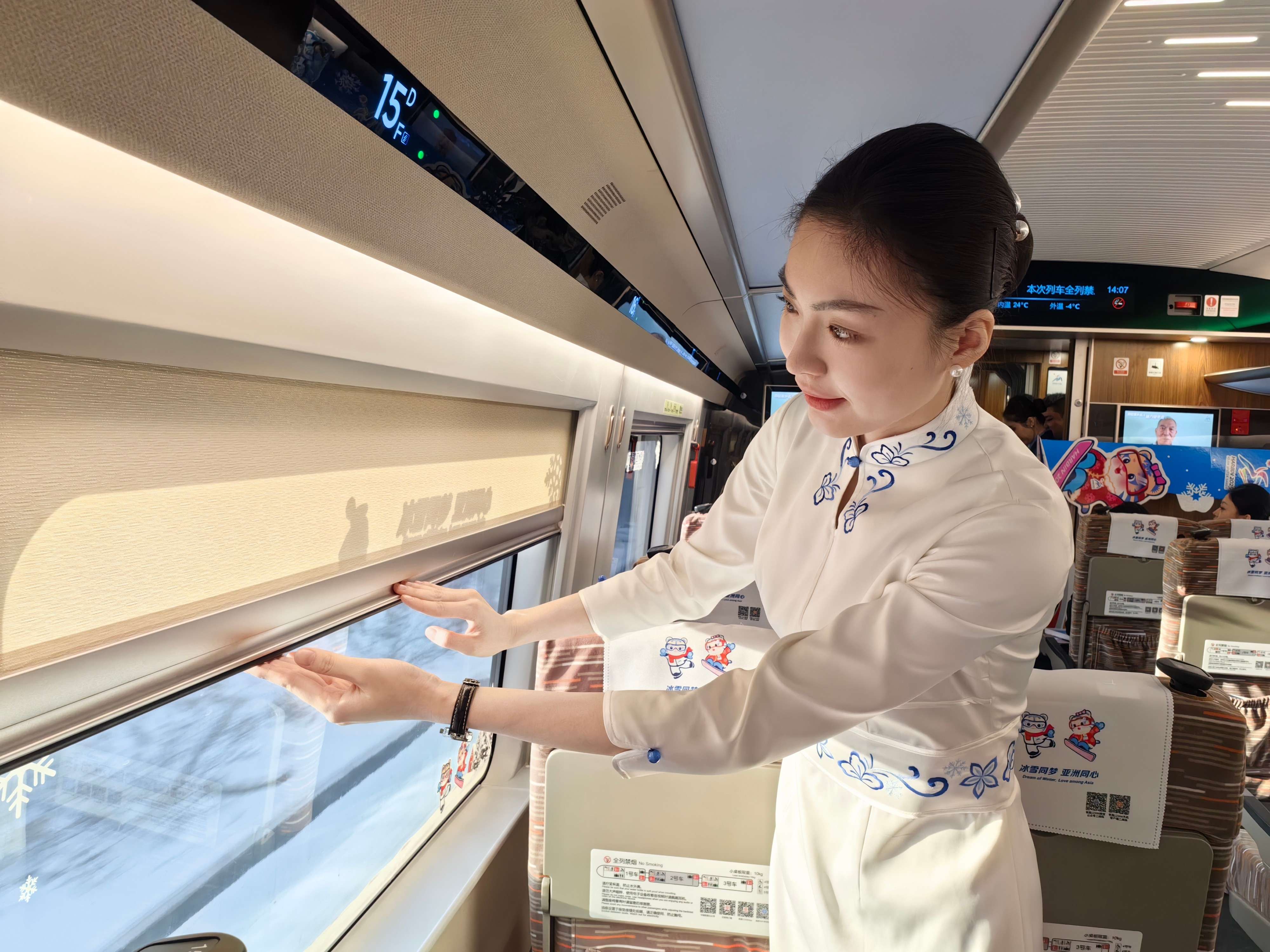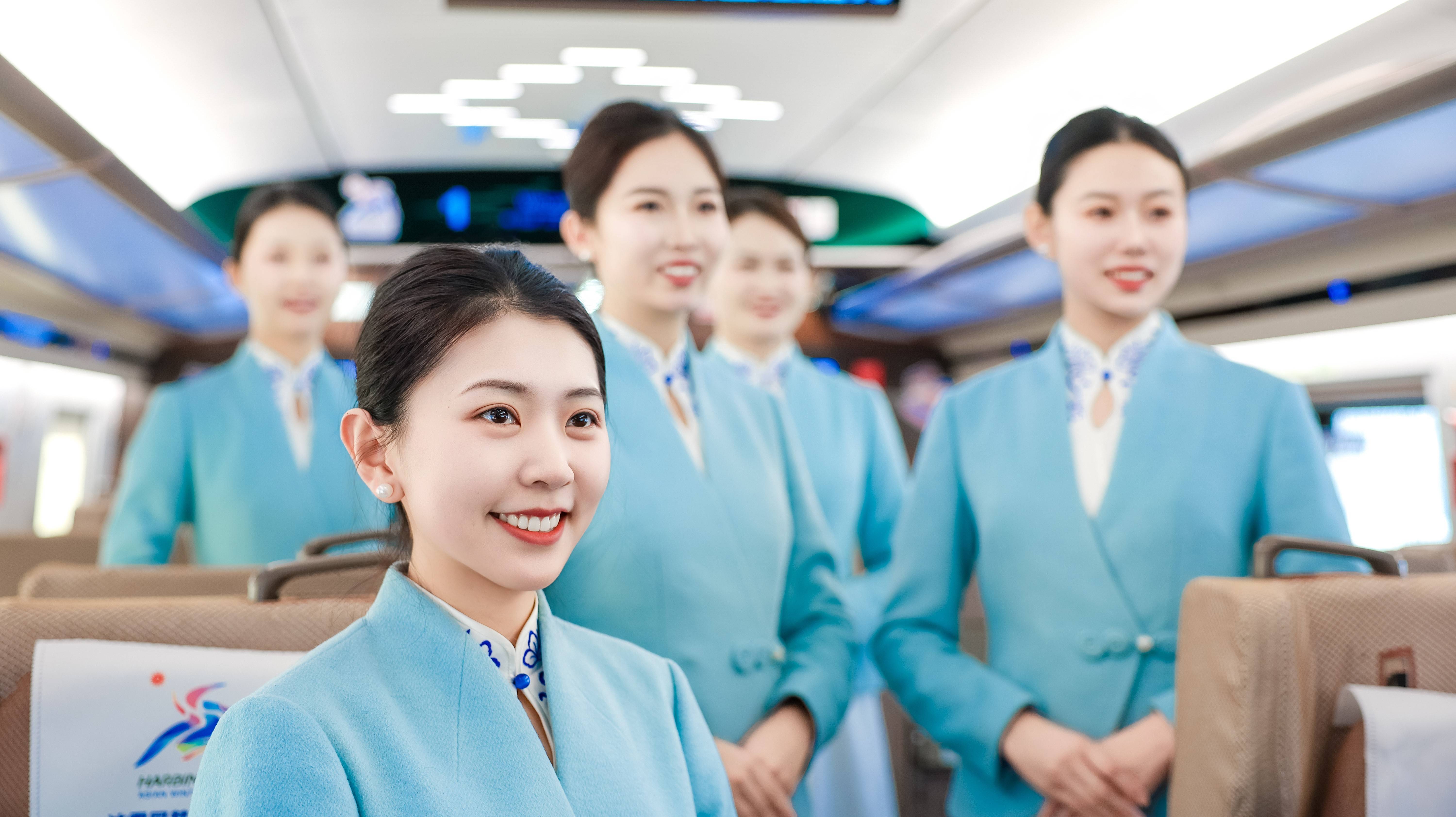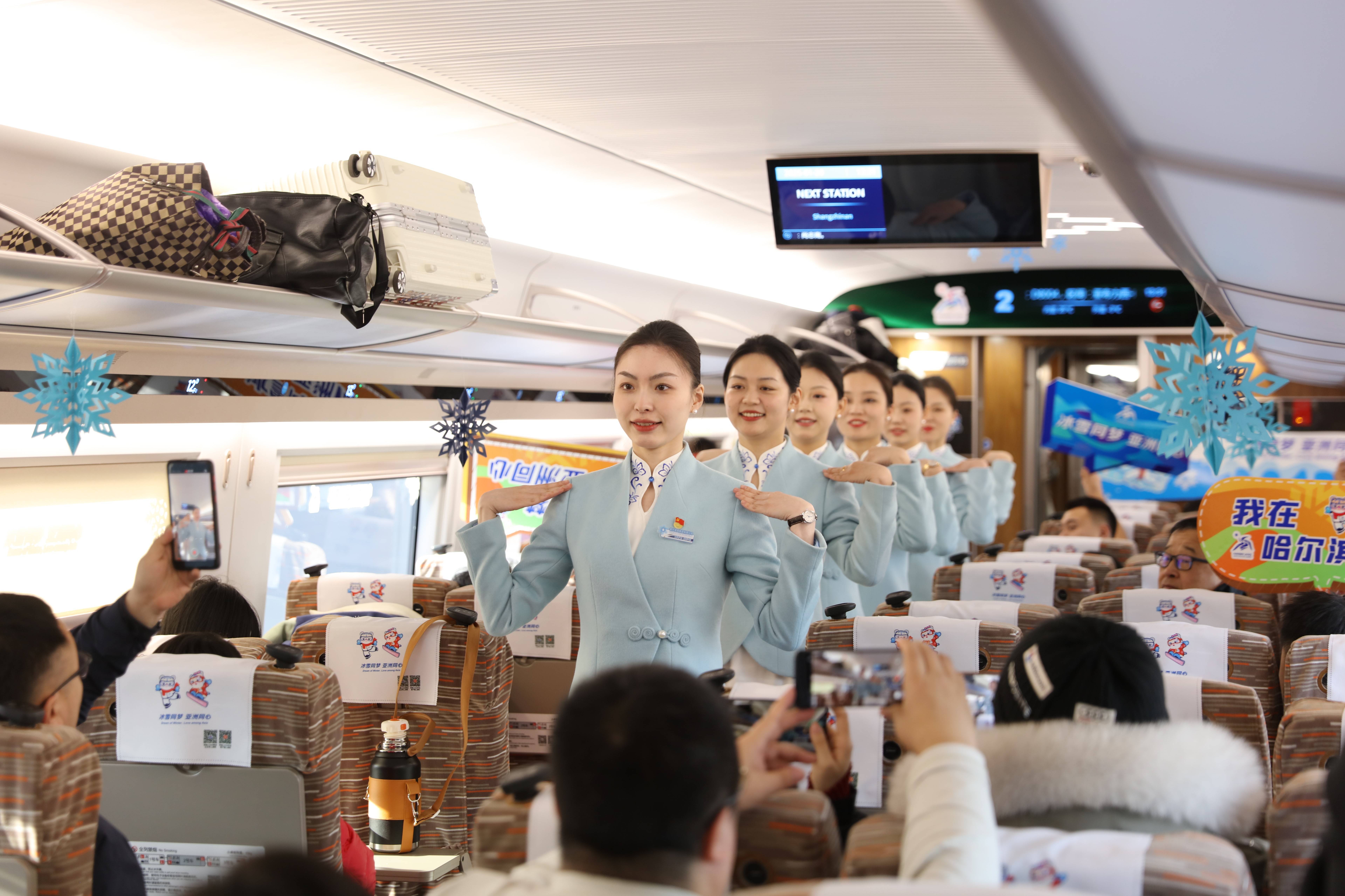 為方便參賽運動員、賽事工作人員和新聞媒體記者出行,哈爾濱局集團公司建立服務(wù)保障機制,在哈爾濱站、哈爾濱西站、亞布力西站等賽事抵離指定車站增加售票專用窗口,提供專用候車區(qū)域,設(shè)置進出站專用流線,并增設(shè)12306亞冬會出行服務(wù)專線。組建了百人專職服務(wù)團隊,經(jīng)過專業(yè)全面培訓,業(yè)務(wù)知識和服務(wù)能力素養(yǎng)得到進一步提升。具有亞冬冰雪元素的全新制服展示了哈爾濱亞冬會鐵路服務(wù)團隊的專業(yè)形象。亞冬專線列車使用新型高寒復興號智能技術(shù)提升型動車組,在智能化、人性化等方面得到新的提升和突破,運動員出行體驗更舒適。