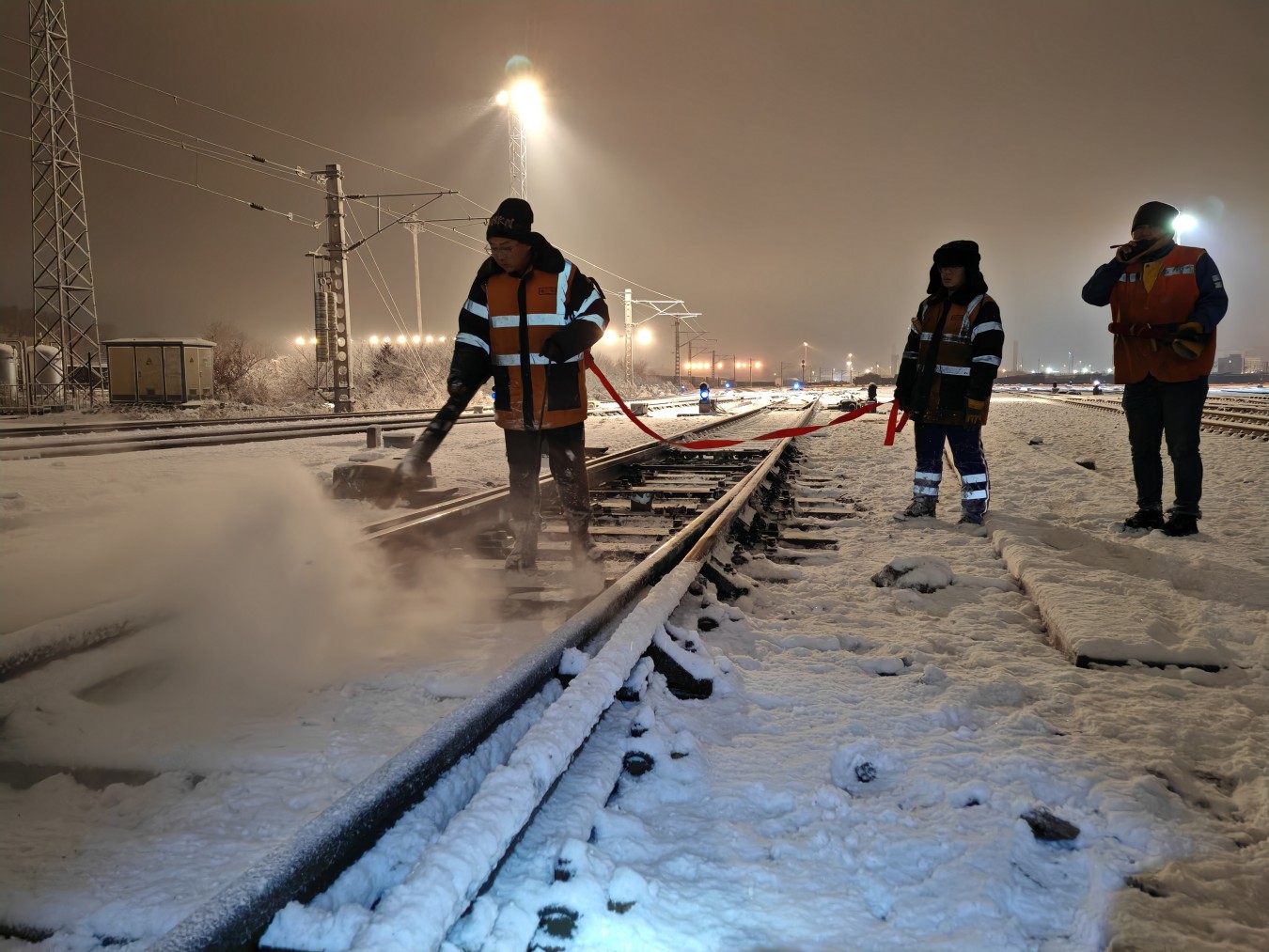 降雪期間,哈爾濱局集團(tuán)公司加強(qiáng)運輸調(diào)度指揮,密切關(guān)注列車運行動態(tài)。受降雪影響較大地區(qū)相關(guān)單位組織職工對線路、岔區(qū)、信號等行車關(guān)鍵設(shè)備實行24小時盯守,全力清掃鐵路重點線路岔區(qū)內(nèi)積雪。