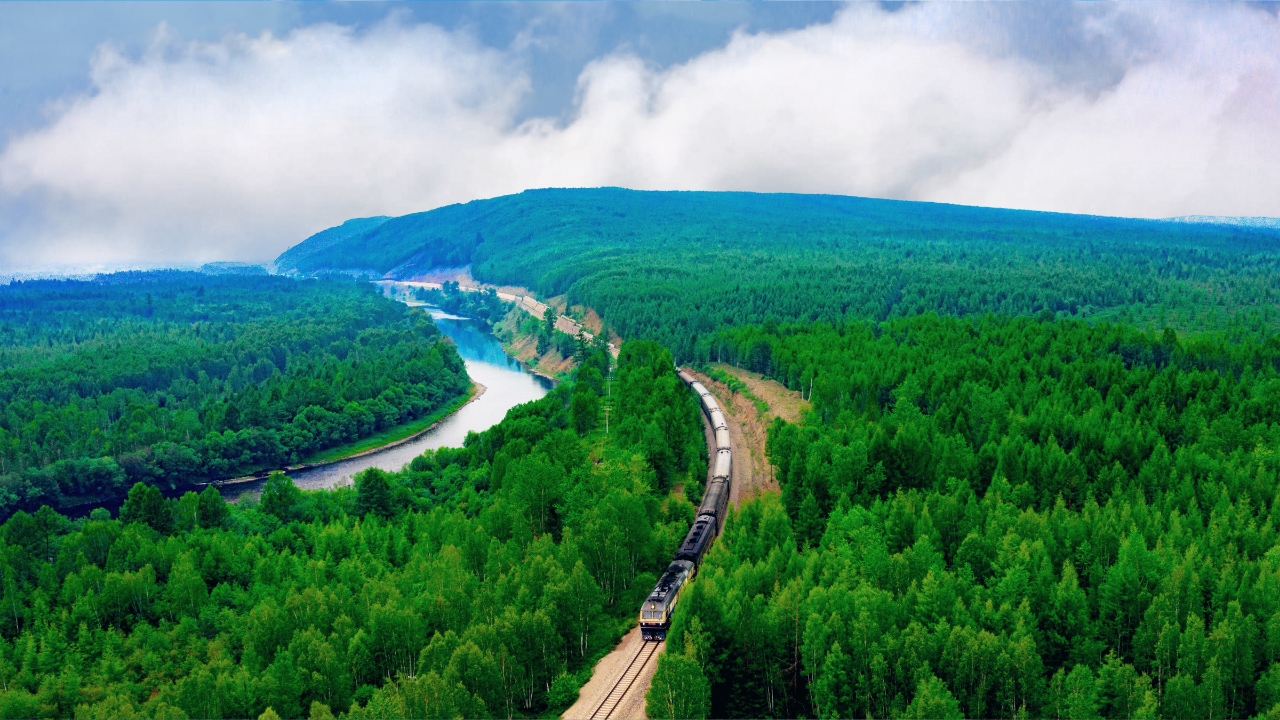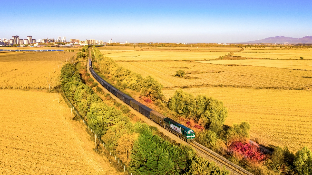 秋天的綏佳線好似被打翻的調(diào)色盤,列車在五花山色中蜿蜒前行,溪水相連的火山堰塞湖,每一處景觀都將會(huì)沾染著秋天賦予的色彩,秋染的火山與湖光山色剛?cè)岵?jì),繪成了一道獨(dú)有的火山堰塞湖秋曲。鐵路沿線稻田里收割機(jī)轟鳴,“北大荒”糧食專列滿載希望駛向南方。夜幕降臨時(shí),鐵軌旁的信號(hào)燈指引著旅途的方向,窗外明月映照著百年濱綏線鐵軌,仿佛能看見中東鐵路時(shí)期蒸汽機(jī)車噴出的銀白色煙靄。