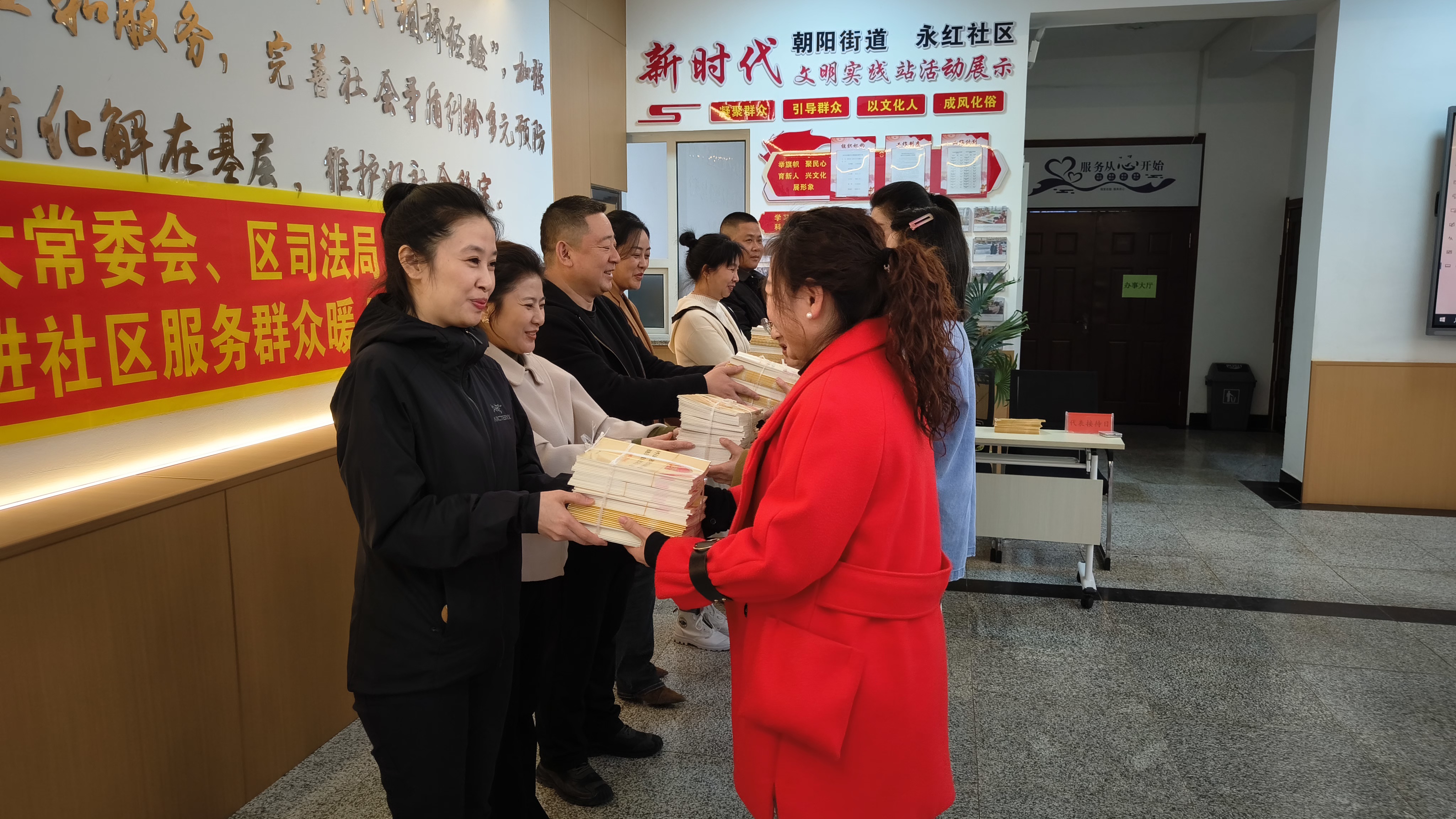 開展《代表法》進(jìn)社區(qū)活動,全力夯實(shí)法律實(shí)施的群眾基礎(chǔ)。4月7日,伊美區(qū)人大常委會聯(lián)合區(qū)司法局組織區(qū)部分人大代表、人大機(jī)關(guān)干部、司法工作者來到伊美區(qū)朝陽街工委,開展了《代表法》進(jìn)社區(qū)集中宣傳活動,向各街(鎮(zhèn))人大工委贈送了《代表法》宣傳手冊500余份,為現(xiàn)場群眾講解了《代表法》知識,向群眾發(fā)放宣傳單、海報等宣傳用品2000余份?;顒蝇F(xiàn)場設(shè)置了法律宣傳、議案建議辦理以及代表風(fēng)采等宣傳展板,開展了代表接待群眾活動。同日,各街(鎮(zhèn))人大工委還開展了相關(guān)專題學(xué)習(xí)宣傳活動,進(jìn)一步營造宣傳貫徹《代表法》的濃厚氛圍。