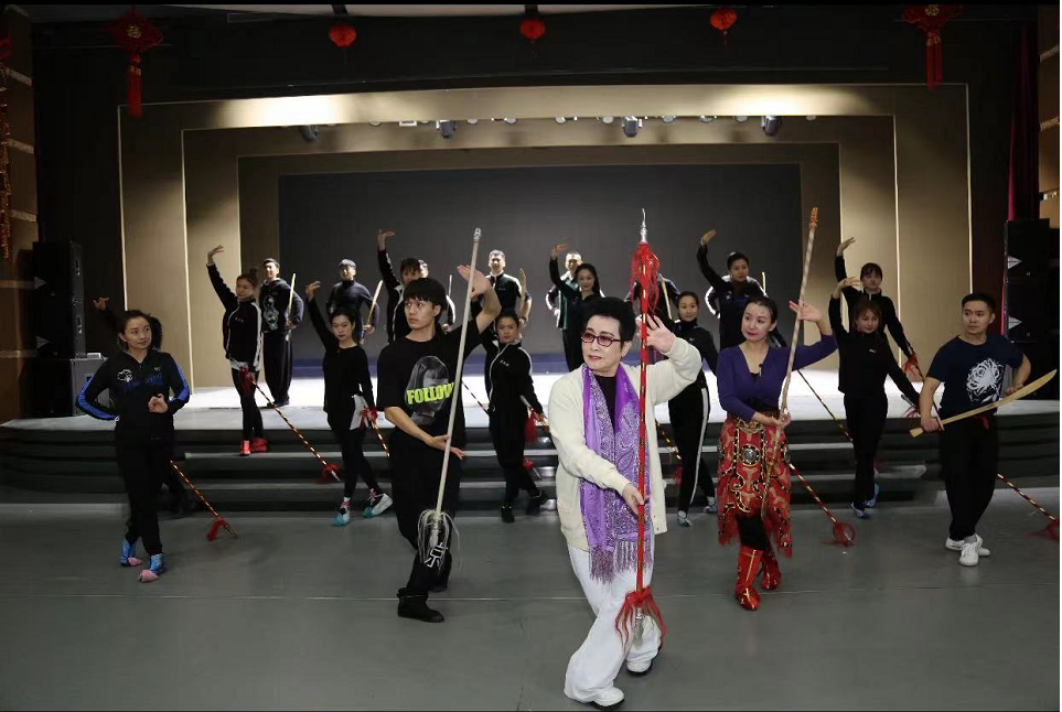白淑賢帶領(lǐng)學(xué)生操練龍江劇的“十八般武藝”受訪者供圖