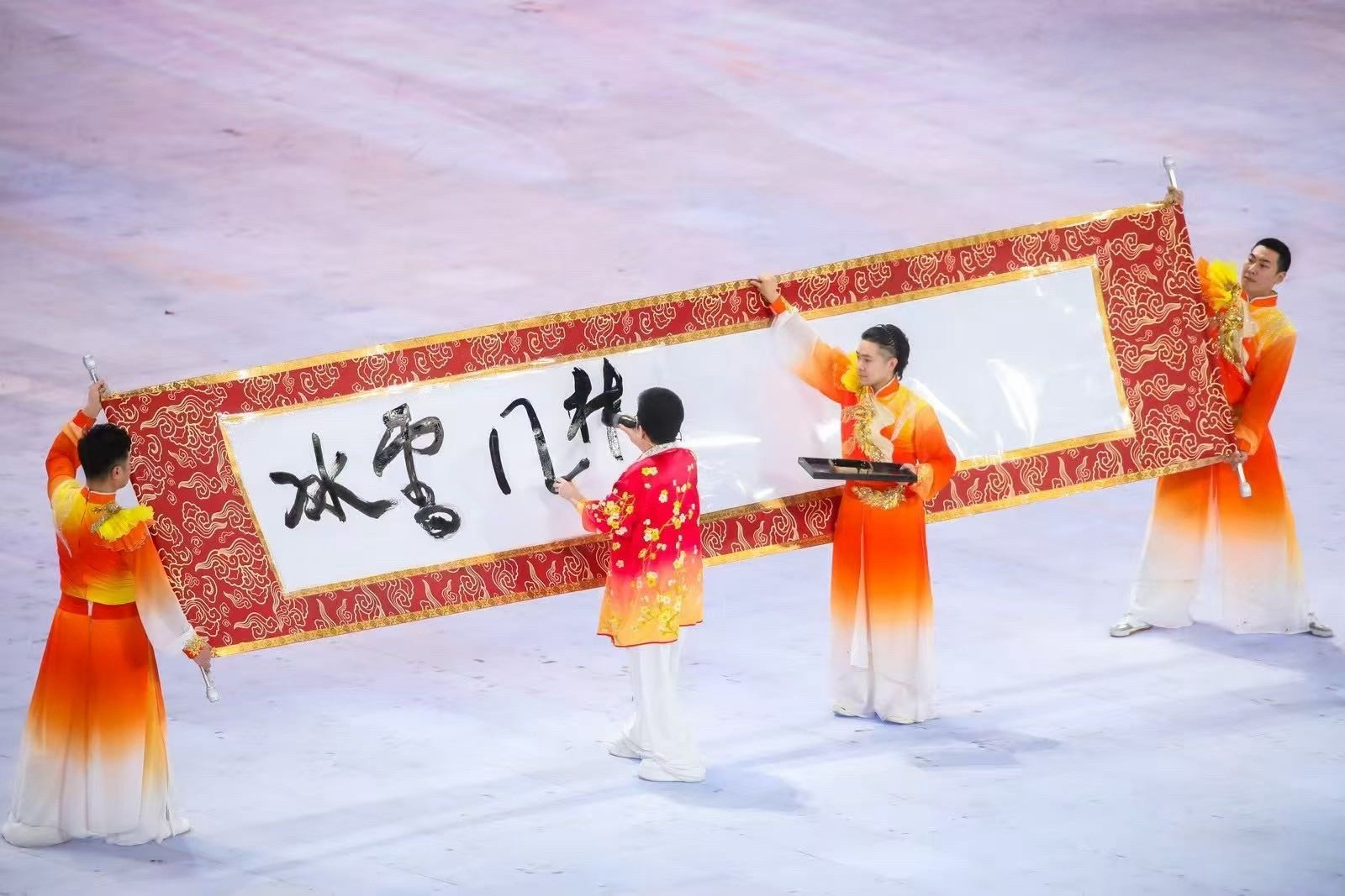 白淑賢在哈爾濱第九屆亞冬會開幕式演出中潑墨獻(xiàn)書 受訪者供圖