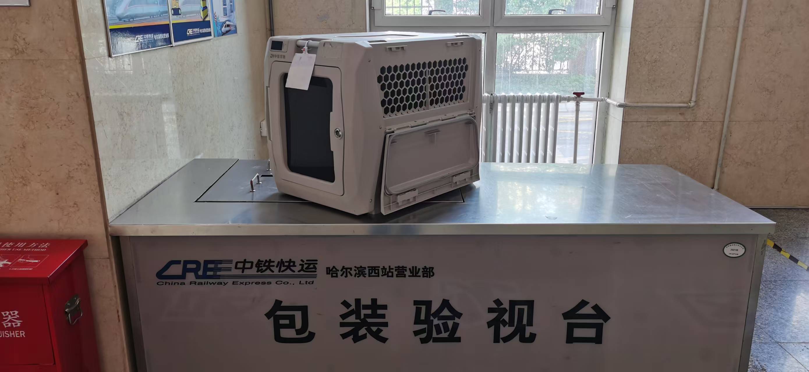 托運(yùn)中的寵物全程獨(dú)立存放,實(shí)行人寵分開,寵物需要全程處在鐵路部門提供的專用寵物運(yùn)輸箱內(nèi),箱體內(nèi)部尺寸為60厘米*45厘米*46厘米(長(zhǎng)寬高),每箱限裝運(yùn)1只寵物,放置在高鐵車廂的指定位置。工作人員通過監(jiān)測(cè)系統(tǒng)觀察寵物狀態(tài),每?jī)尚r(shí)巡視檢查一次,視情況給寵物添加飲用水,不予喂食。工作人員會(huì)登記托運(yùn)寵物的基本情況以及旅客的相關(guān)信息,便于聯(lián)系。