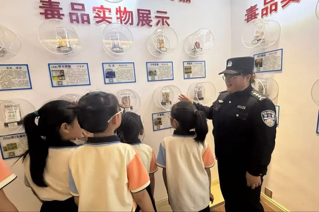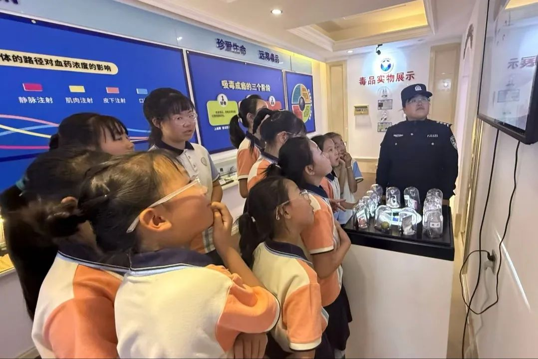 進入禁毒教育基地,禁毒大隊宣傳民警結合禁毒歷史、當今毒情形勢、毒品的種類、國家禁毒政策等為同學們作了詳細講解。在禁毒知識展示區(qū),宣傳民警通過實物陳列、圖片展示以及多媒體互動等形式,為同學們介紹了各類傳統(tǒng)毒品與新型毒品的特點、危害以及識別方法?!澳滩琛薄疤恰薄吧项^電子煙”等偽裝成日常物品的新型毒品引起了學生們的高度關注,宣傳民警結合真實案例,深入剖析這些毒品對個人身心健康、家庭幸福以及社會穩(wěn)定造成的巨大破壞,一個個觸目驚心的案例讓學生們深刻認識到毒品的猙獰面目,紛紛表示要時刻保持警惕,堅決抵制毒品誘惑。