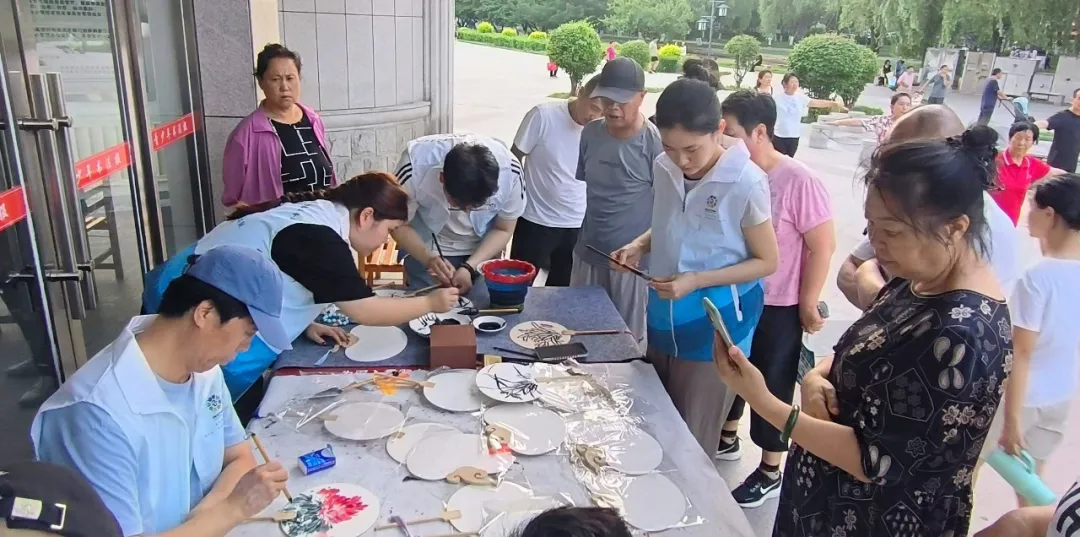 活動(dòng)現(xiàn)場(chǎng),佳木斯市美術(shù)家協(xié)會(huì)的文藝家志愿者們用畫筆在扇面上靈動(dòng)游走,筆墨或剛勁有力,或飄逸灑脫,傳遞著中華優(yōu)秀文化的獨(dú)特魅力。市民們滿懷期待地圍在志愿者身邊,仔細(xì)觀看創(chuàng)作過程,不時(shí)發(fā)出陣陣贊嘆?!拔乙恢焙芟矚g傳統(tǒng)文化,今天能親眼看到藝術(shù)家們現(xiàn)場(chǎng)創(chuàng)作扇面,還能得到這么精美的作品,真的太開心了!”市民王阿姨興奮地說道。大家有序地排隊(duì)領(lǐng)取扇面,臉上洋溢著滿足的笑容,手中的扇面不僅是一份溫暖的文化饋贈(zèng),同時(shí)也給群眾們送去了夏日的清涼。