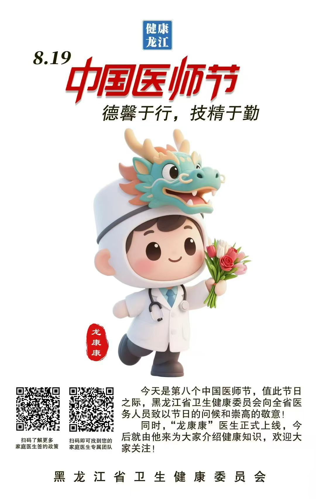 節(jié)日當(dāng)天,結(jié)合黑龍江省名特點(diǎn)和醫(yī)務(wù)人員形象的“龍康康”醫(yī)生正式上線,“龍康康”醫(yī)生將在省衛(wèi)生健康委官方微信公眾號“龍江衛(wèi)生健康”通過早安海報進(jìn)行健康知識普及。