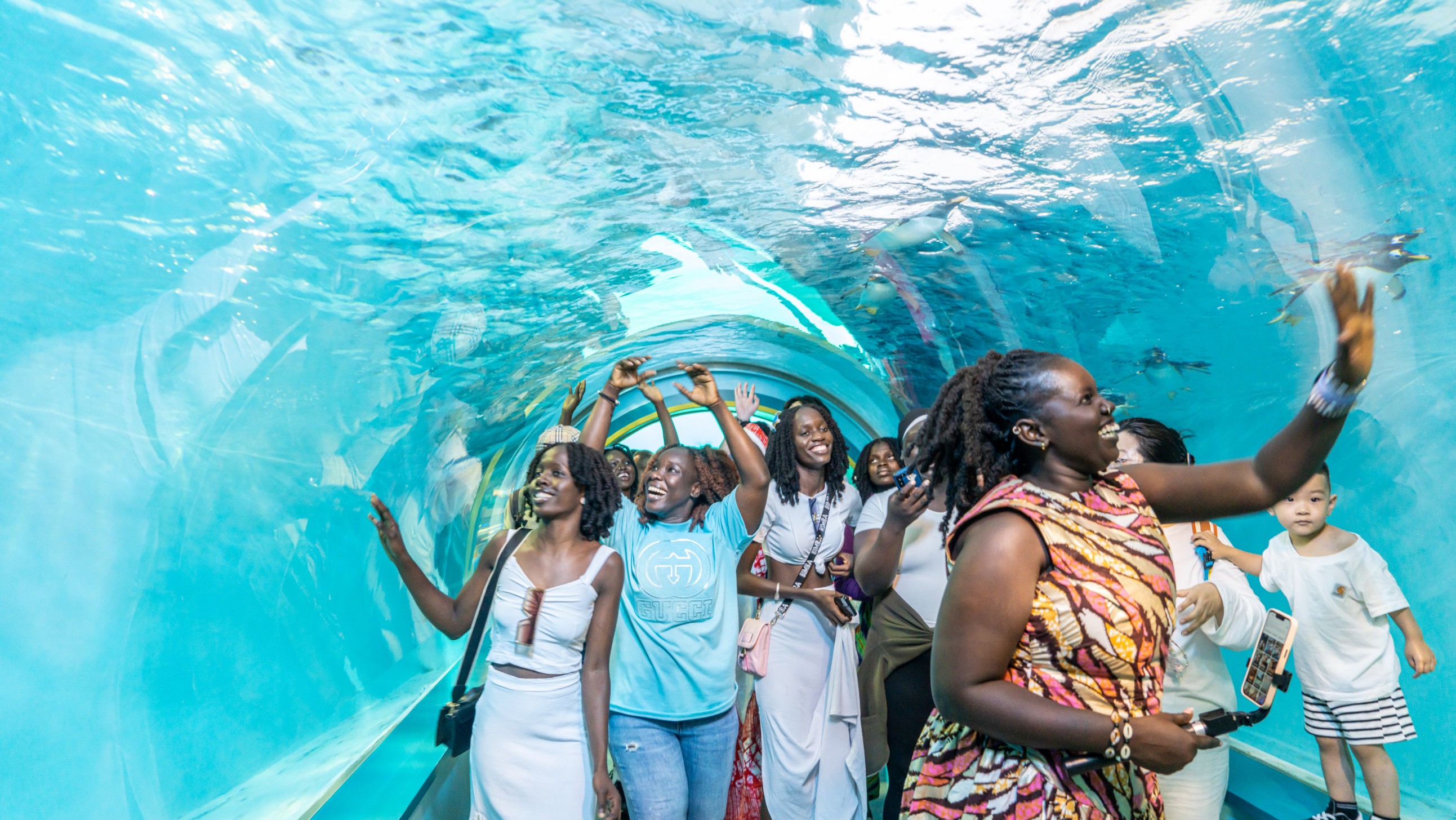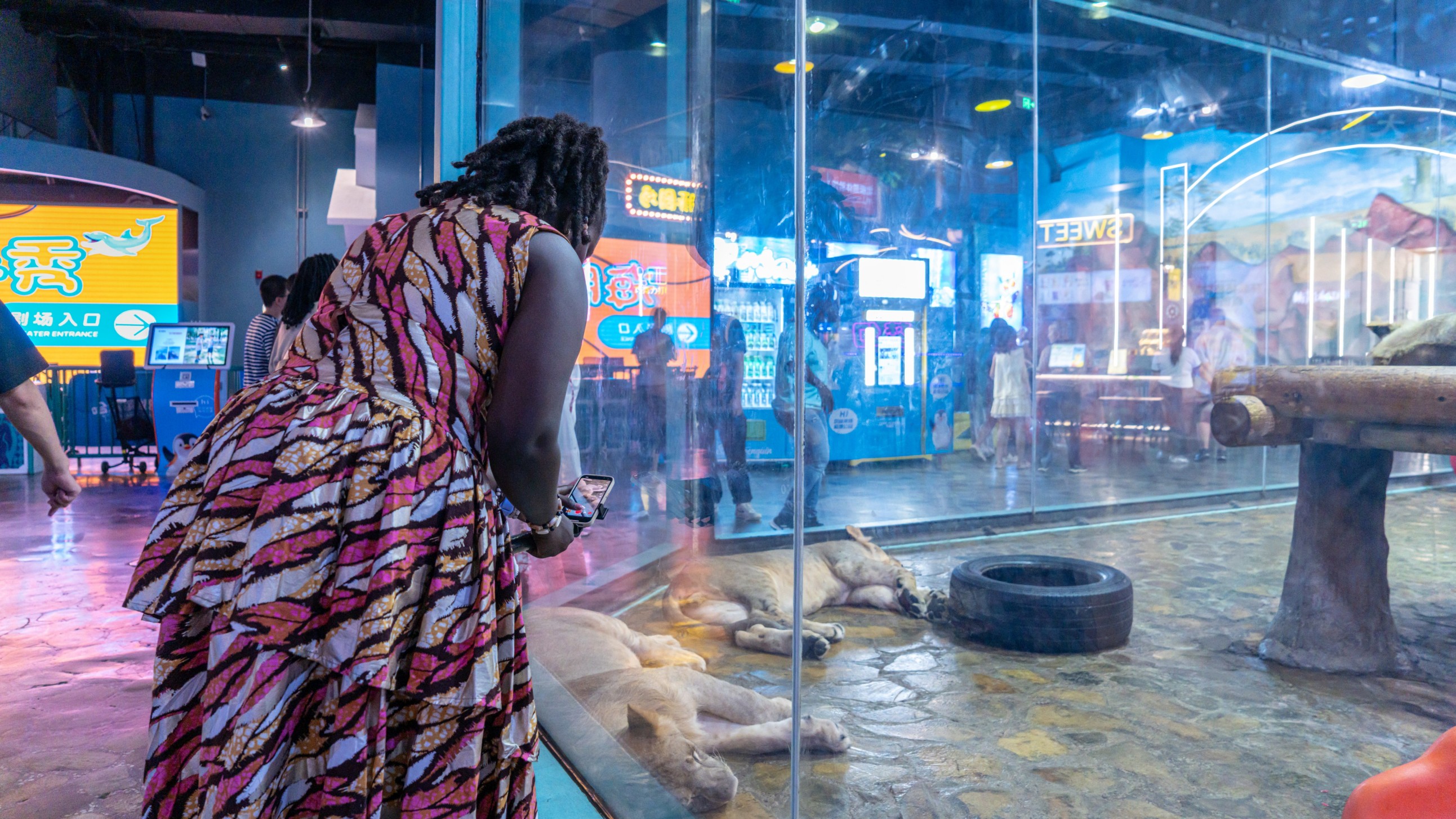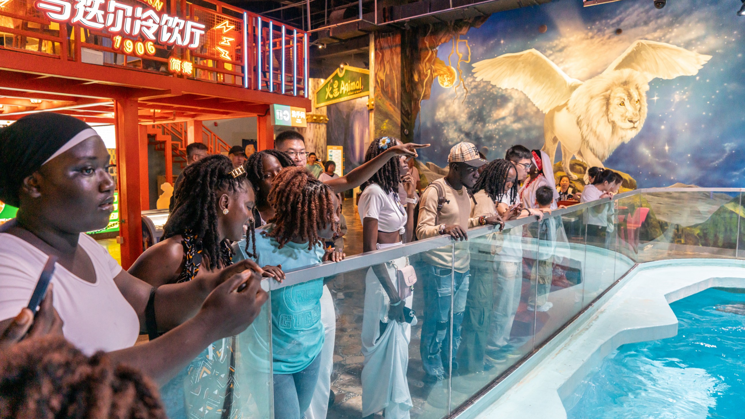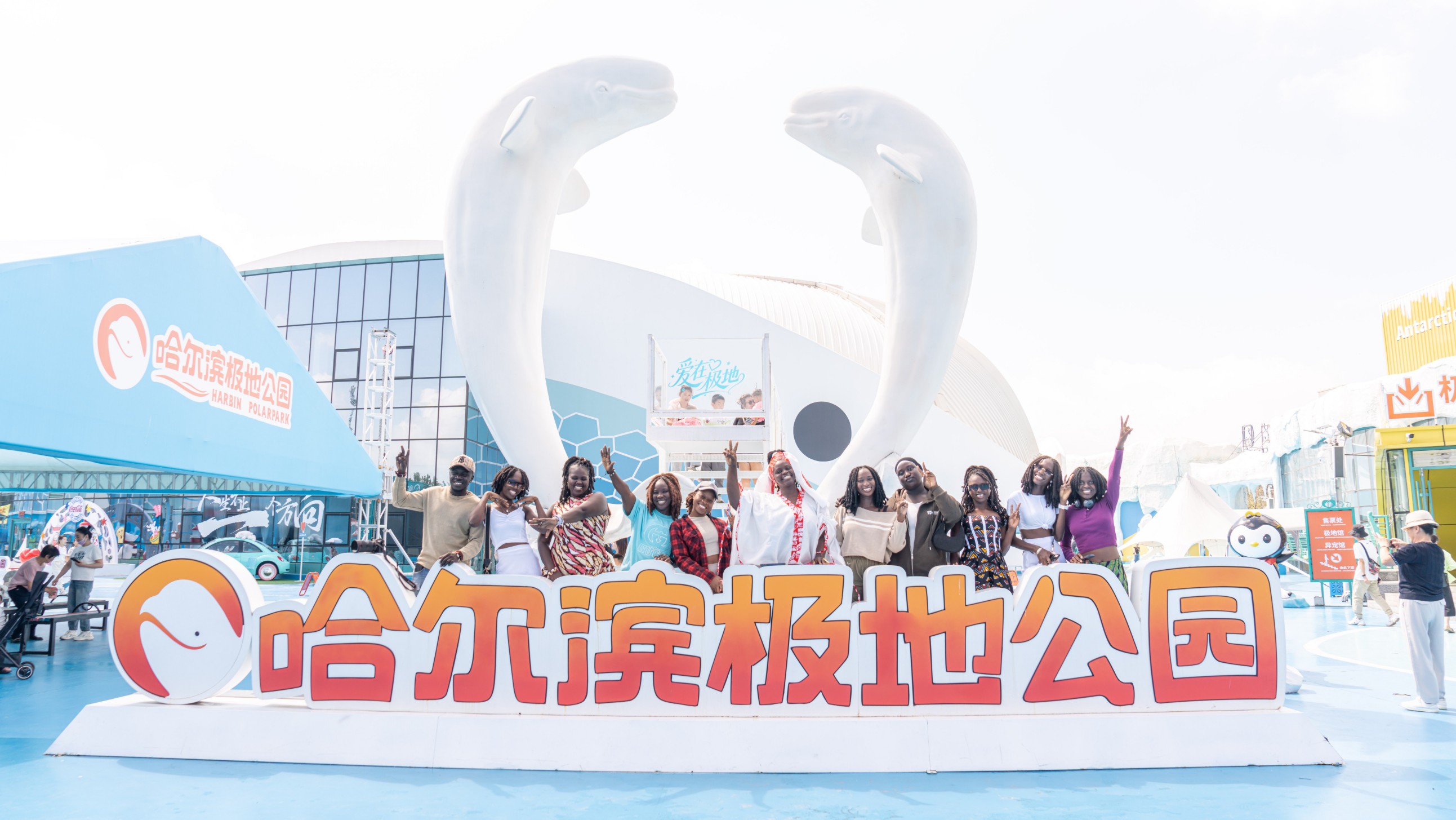 演出結(jié)束后,藝術(shù)團(tuán)走進(jìn)極地館,近距離觀賞了世界首例克隆北極狼、南極企鵝、海豹等珍稀極地動物,不時發(fā)出驚嘆;當(dāng)觀賞世界首個極地白鯨水下表演“海洋之心”時,白鯨與保育員感人至深的演繹讓非洲藝術(shù)家們眼眶泛紅,多次拭淚,不禁感言“這般純凈的藝術(shù)直擊心靈,是從未有過的震撼與感動”。行程尾聲,藝術(shù)團(tuán)漫步至“摩洛哥藍(lán)色小鎮(zhèn)”,明快藍(lán)墻與非洲風(fēng)情相映,熟悉的北非色調(diào)讓藝術(shù)家們倍感親切,紛紛駐足拍照,盛贊“極地公園藏著多元驚喜,哈爾濱的熱情與藝術(shù)氛圍讓人沉醉”。