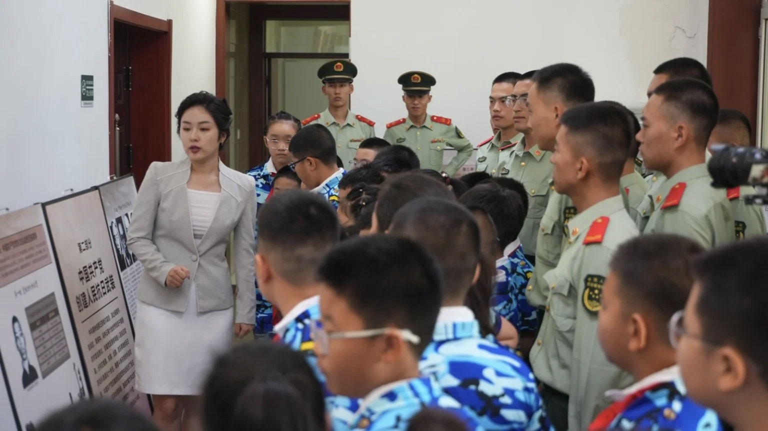 在軍營開放日,來自哈爾濱市松北區(qū)前進(jìn)小學(xué)的少先隊員走進(jìn)武警黑龍江總隊某支隊,參觀東北十四年抗戰(zhàn)史陳列展,聆聽主題宣講,體驗軍營生活,高唱歌曲《少年強(qiáng)軍夢》,在沉浸式國防課堂中感悟軍人的鐵血丹心,厚植傳承紅色基因的家國情懷。