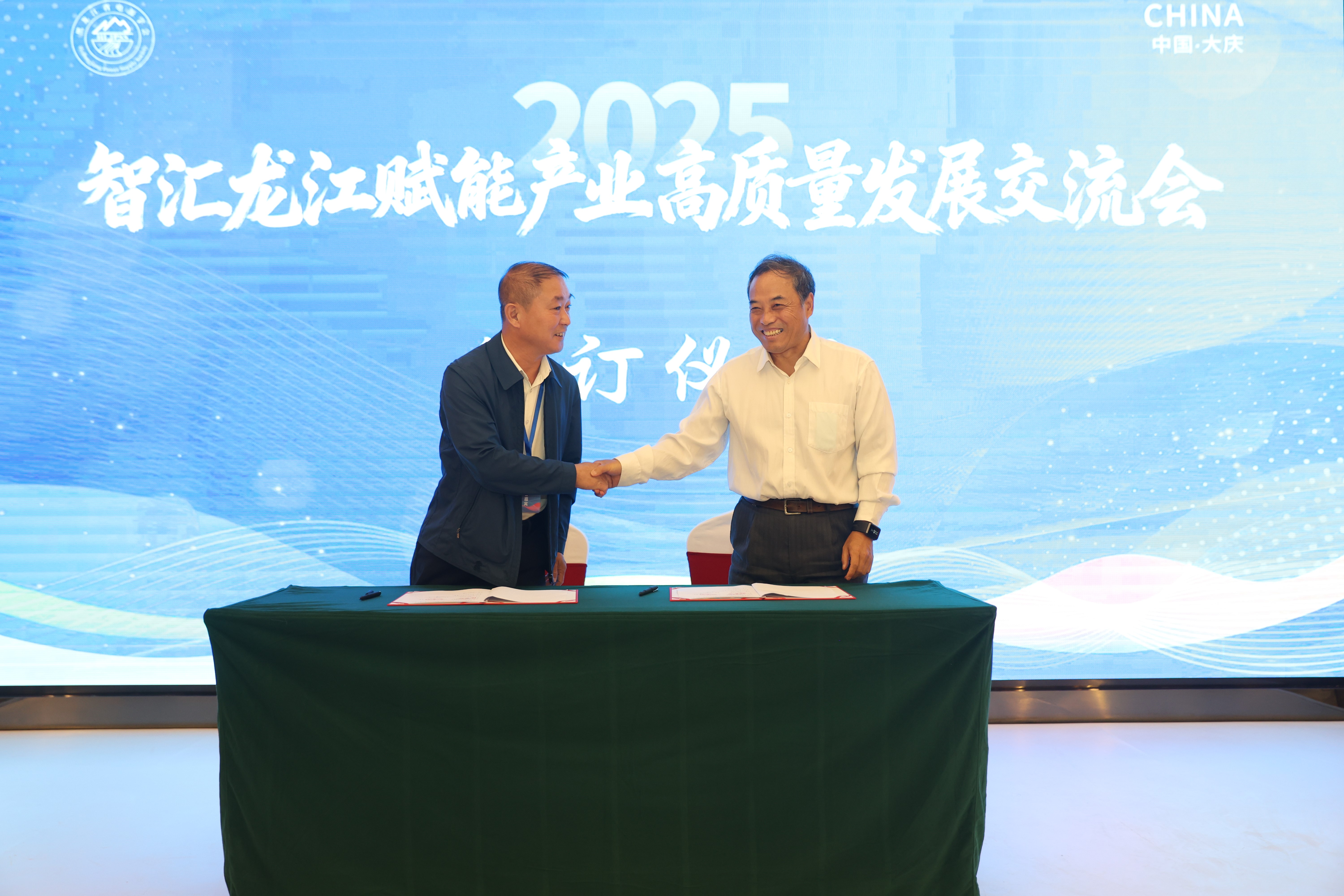 黑龍江省省級學會科技服務團代表—黑龍江省電源學會副理事長佟為明教授與大慶市科學技術協會副主席于雷進行簽約