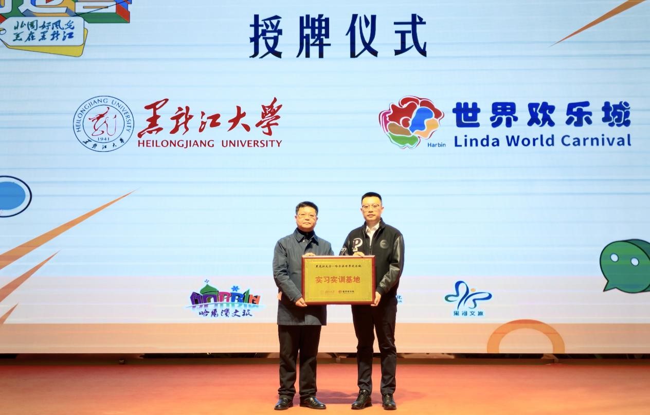 活動現(xiàn)場還舉行了實踐基地授牌儀式和戰(zhàn)略合作協(xié)議簽約儀式,黑龍江大學新聞傳播學院為世界歡樂城授實習實訓(xùn)基地牌,世界歡樂城與哈爾濱鑫成文化傳播有限公司簽訂戰(zhàn)略合作協(xié)議,為未來校企協(xié)同、文旅傳播搭建了更堅實的平臺。