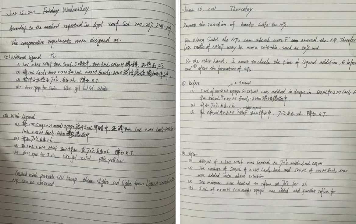 許輝教授2011年博士后研究時期的原始實驗記錄