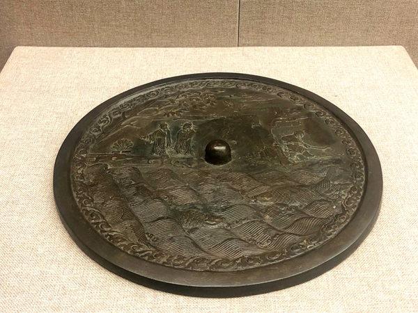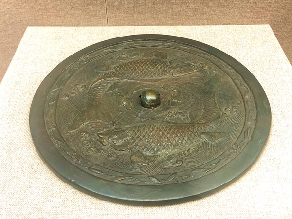 至公元1115年,女真人完顏阿骨打建立金朝,逐鹿塞北,問鼎中原,與西夏、南宋三足鼎立。女真統(tǒng)治者為鞏固政權(quán),提高民族素質(zhì),不僅創(chuàng)制女真文字,還積極吸取漢文化,使中原文化在金源內(nèi)地蓬勃發(fā)展,銅鏡就是其具體體現(xiàn)之一。從近幾十年考古發(fā)掘來看,銅鏡的主體、紋飾十分豐富,呈現(xiàn)出多樣化的風(fēng)格,既模仿漢、唐、宋各代銅鏡,也創(chuàng)新了獨具特色的圖案紋飾。常見的金代銅鏡有雙魚鏡、人物故事鏡、盤龍鏡、瑞獸鏡、瑞花鏡等,以雙魚鏡、童子攀枝鏡最為流行,其中,以人物故事紋飾為主題的銅鏡大多取材于唐宋時期的傳奇故事。金代銅禁極嚴,銅鏡一般由官府鑄造,鏡背邊緣刻有檢驗衙署的名稱,這是金代銅鏡最重要的特點。