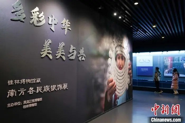 3月27日,“多彩中華美美與共——桂林博物館藏南方各民族銀飾展”在黑龍江省博物館開展。該展覽展出177件(套),共計(jì)279件銀飾,根據(jù)銀飾佩戴部位分為“銀花釵頭”“美佩環(huán)身”“鐲釧繞腕”三個(gè)單元,依次介紹了銀飾中的頭飾,頸、胸、背、腰等部位佩戴的銀飾以及銀手飾。從紋樣涵義、饋贈(zèng)習(xí)俗、制作工藝等方面對(duì)銀飾文化內(nèi)涵進(jìn)行全方位解讀。圖為市民參觀銀飾展。中新社記者 趙宇航 攝