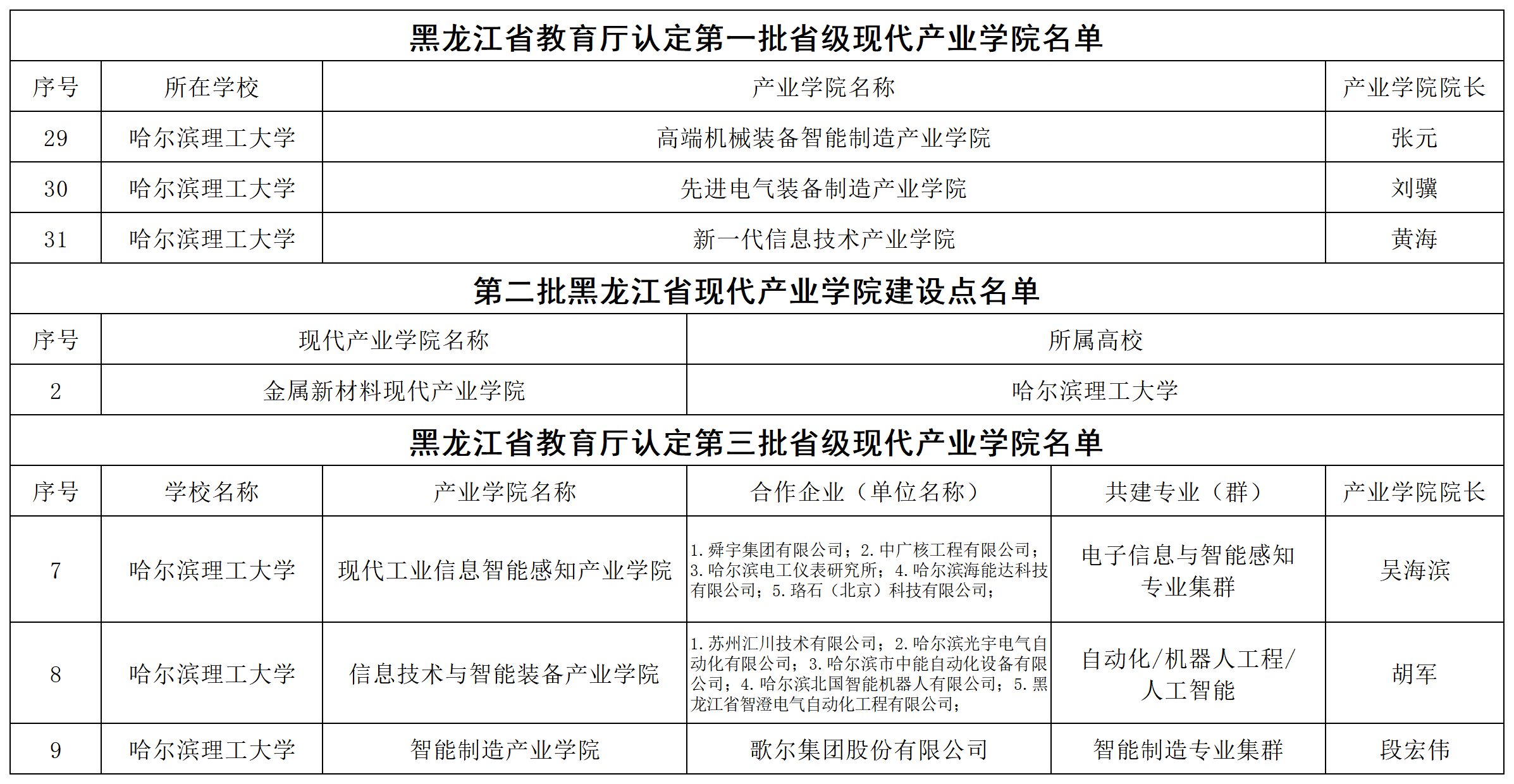 黑龍江網訊(記者 徐楠)近日,黑龍江省教育廳公布了第三批省級現代產業(yè)學院認定名單,哈爾濱理工大學申報的“現代工業(yè)信息智能感知產業(yè)學院”“信息技術與智能裝備產業(yè)學院”“智能制造產業(yè)學院”3個產業(yè)學院成功入選。至此,學校獲批的省級現代產業(yè)學院總數已達7個,位居全省高校首位,充分體現了學校在產教融合與應用型人才培養(yǎng)方面的優(yōu)勢。