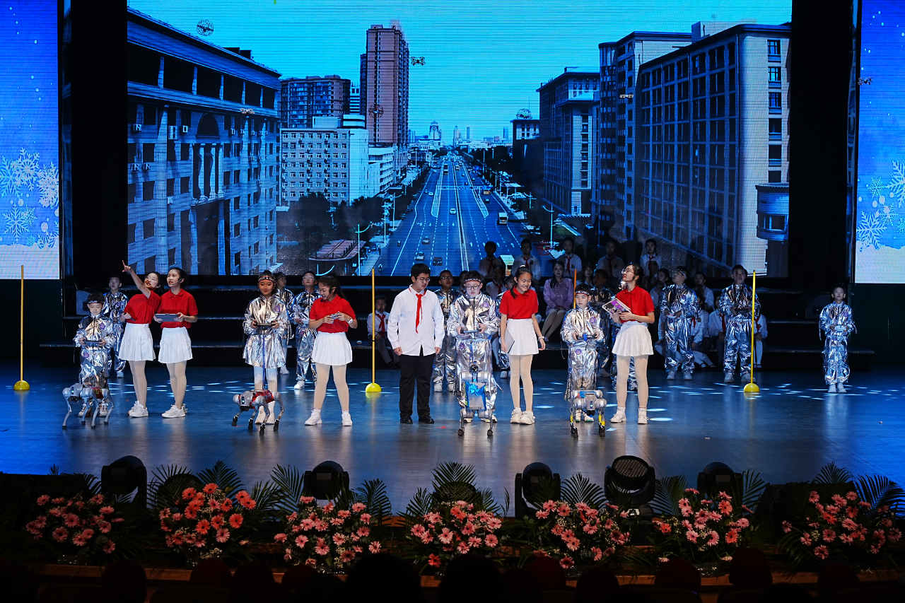 在“建家鄉(xiāng)”篇章中,哈爾濱市花園小學(xué)校與哈爾濱市蕭紅中學(xué)聯(lián)合呈現(xiàn)的優(yōu)秀思政課案例《一江兩岸 我的家鄉(xiāng)》,以跨學(xué)段、跨學(xué)科融合為特色,實(shí)現(xiàn)中小學(xué)思政課內(nèi)容銜接與形式聯(lián)動(dòng),更創(chuàng)新引入無(wú)人機(jī)編隊(duì)演示與機(jī)器狗智能互動(dòng)等科技元素,將前沿科技與家鄉(xiāng)情懷深度融合,探索出一條“思政+科技”的創(chuàng)新育人路徑,充分彰顯思政教育在新時(shí)代的活力。
