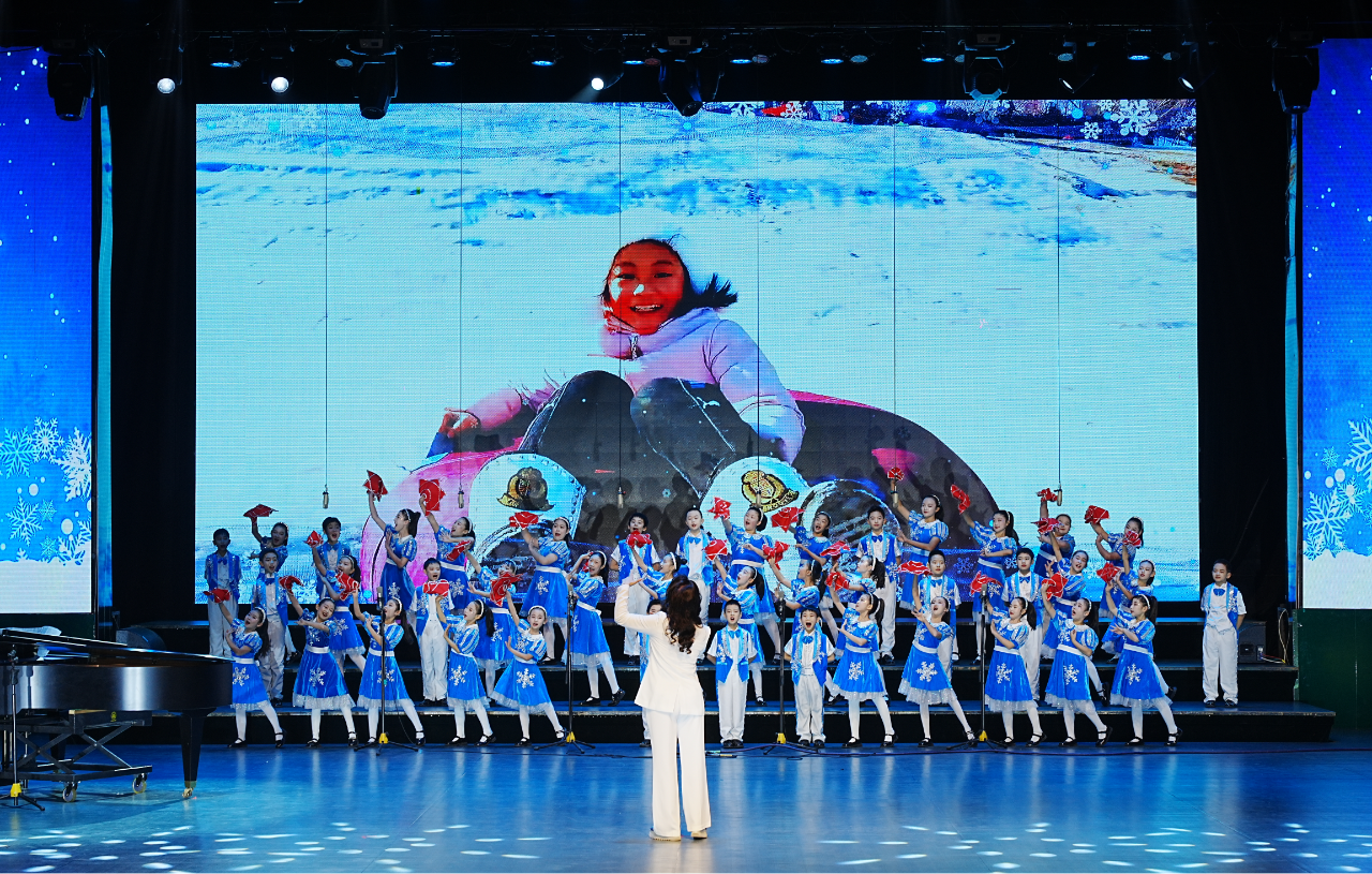 隨后,哈爾濱少年宮小雪花藝術(shù)團(tuán)合唱一團(tuán)以一曲《北方的孩子愛(ài)北方》將氛圍推向高潮,以清澈童聲唱出對(duì)家鄉(xiāng)的熾熱深情。