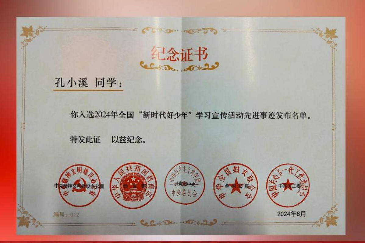 黑龍江省宣傳思想文化工作回顧丨孔小溪同學(xué)入選2024年全國(guó)“新時(shí)代好少年”